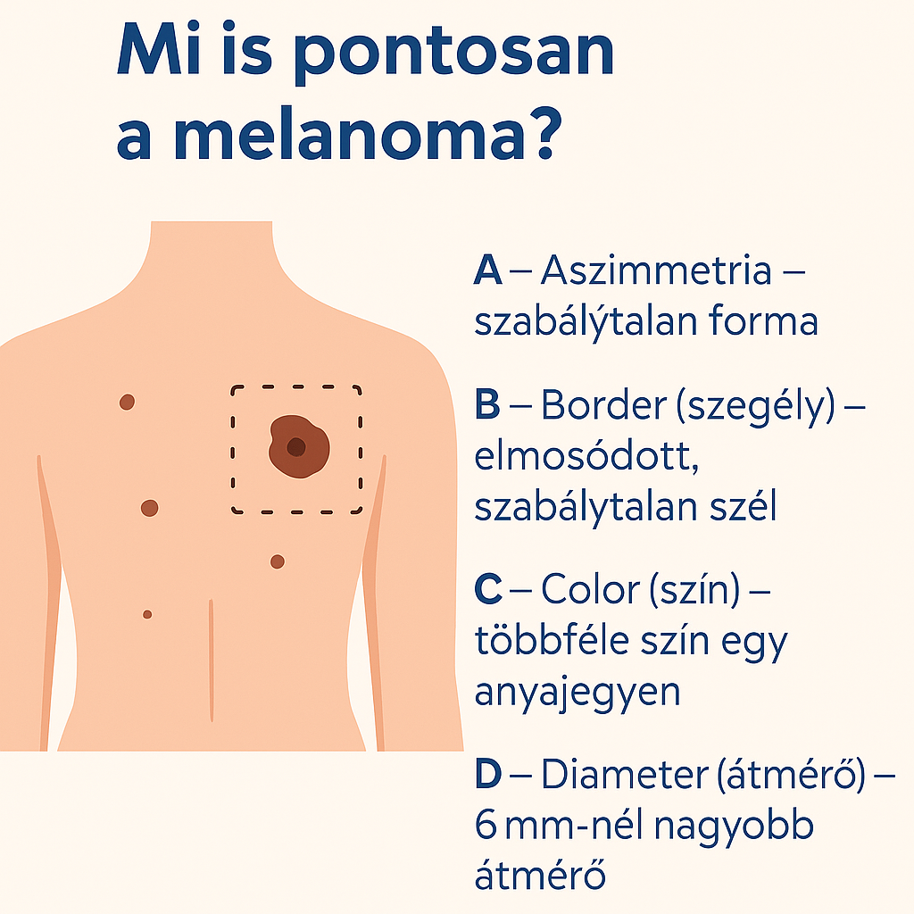 A melanoma a bőr pigmenttermelő sejtjeiből (melanociták) alakul ki. Gyorsan növekszik, és kezeletlenül áttéteket képezhet a nyirokcsomókba, tüdőbe, májba vagy az agyba. A jó hír? Korai felismeréssel és kezeléssel 90%-os túlélési esély érhető el.