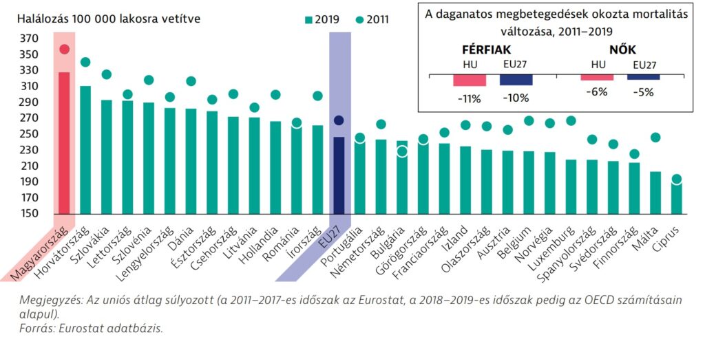 Ráadásul hazánkban a rákellátásra fordított összeg is jóval az uniós átlag alatt marad. (2018-ban ez fejenként 226 EUR volt, az uniós átlag, 326 EUR, 69%-a.)